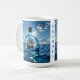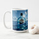 Eine Kaffee-Tasse zum Thema Meer. Ein Schiff in einer Flasche, das auf dem Meer schwebt. Eine atemberaubende Illustration für diejenigen, die ein nautisches Thema Liebe.