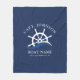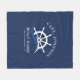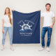 Die blaue und weiße Fleecedecke ist mit einem Schiffshelm und Meereswellen versehen. Eine tolle Dekoration für einen Yachtbesitzer oder jeden Segler. Personalisieren Sie es, indem Sie Ihren Namen, Ihren Bootsnamen und die Stadt, in der Sie Set segeln, hinzufügen.