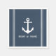 Personalisiertes Party Napkins mit Ihrem Bootsnamen, Familiennamen oder anderen gewünschten Text. Mit einem Vintagen Bootanker und Seeseil Streifen in Weiß auf schick-blau-grau oder einfach die Primärfarbe an Ihr aktuelles Thema anpassen. Ideal für Geburtstage, Party, Feiertage oder jede Gelegenheit.