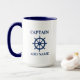 Nautical Ships Wheel Helm in Navy Blau mit Ihrem Personalisierten Kapitän Name, Bootname oder Text auf einem individuell anpassbaren großen Kaffee, Tee-Tasse.