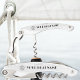 Ein personalisierter Flaschenöffner aus Wassereisen mit Korkenschnecke und einem schlichten und stilvollen Holzdesign mit silberfarbenem Schiffsrad und individuellem Text.