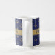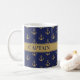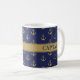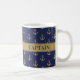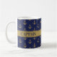Diese nautische Tasse ist ideal für Ihren Captains Morgen Java während Ihres Segelns auf dem offenen Meer. Der marineblau Hintergrund ist so chic mit den Imitaten goldenen Ankerwiederholmuster. Fügen Sie "Captain" hinzu, und diese Tasse ist übertrieben chic.