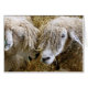 Zwei schöne Cotswold Schafe fotografierten in einem lustigen und humorvollen Moment, in dem sie miteinander sprachen. Cotswold Schafe stammen aus den Cotswolds in England und werden für ihre Wolle und Fleisch gezüchtet. Sie haben lange Fleecen mit fast goldener Note.