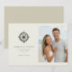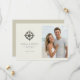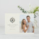 Diese Hochzeitseinladung zur Vorankündigung zeigt ein geteiltes Layout mit einem maritimen Thema, das auf der linken Seite ein antikes Schiffsruder und auf der rechten Seite einen Platzhalter für ein Strandfoto zeigt. Das Design kombiniert gedämpfte Grau- und Brauntöne mit sanften Blau- und Weißtönen für eine ruhige, küstennahe Atmosphäre. Elegante Serif- und Sans-Serif-Schriftarten betonen die Namen des Paares und die Details der Veranstaltung, während der Gesamtstil klassische Motive mit moderner Schlichtheit verbindet. Perfekt für Paare, die das Meer lieben, weckt diese Vorlage Freude und Vorfreude auf ihren besonderen Tag.