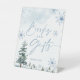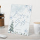 Blauer Winterwunderland Babydusche und Brautparty Schild mit Kiefern und Schneeflocken. Ideal für das Winterwunderland, für die Babydusche und das Brautparty im Winter, sowie für Hochzeiten im Winter.