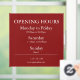 Gestalten Sie Ihre Geschäftszeiten klar und stilvoll mit diesem anpassbaren Fensteraufkleber! Perfekt für Schaufenster und Türen, zeigt dieser wiederverwendbare Aufkleber Ihre Öffnungszeiten mit einem sauberen, professionellen Design, das ins Auge fällt. Einfach anzubringen und zu entfernen, ohne Rückstände zu hinterlassen - ideal für Geschäfte, Cafés, Salons und Büros.