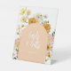Karten und Geschenkschild mit einem prächtigen, pfirsichfarbenen Bogen, der mit zarten Aquarellfarben-Blume in atemberaubenden Gelb-, Orange- und Weichpinken geschmückt ist. Dieses Design ist lustig, feminin und perfekt für eine anspruchsvolle Feier.