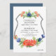 Einfache doppelreihige Schild Kontur Sets der Blumenhaufen oben und unten für ein sauberes, knuspriges Design. Diese Einladungssuite wurde von Audrey Jeanne Roberts, Künstlerin und Designer, in Aquarellfarben handgemalt. Die Rückseite hat einen Stahlblau-Hintergrund (wir können dies in anderen Farben tun, nur gefragt).