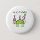 Eine niedliche grüne lächelnde Schildkröte, die einen Partyhut trägt, befördert eine beleuchtete Geburtstagskerze auf seiner Rückseite und Text liest "sie ist mein Geburtstag". Ein Heliumballon trägt die Nr. 2!