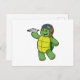 Schildkröte als Pilot mit Papier-Flugzeug Postkarte