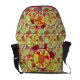 Meeresschildkröte innerhalb der Meeresschildkröte in den roten/orange/gelben Farben. Seeschildkröte mit einem Entwurf einer kleineren Schildkröte und mehrfache bunte Fische gegen gemusterten Hintergrund. Meeresschildkröte Art. Diese Botetasche hat den Entwurf auf der Außenseite.