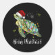 Schildkröte Weihnachtsmannmütze Frohe Weihnachtsbe Runder Aufkleber