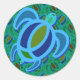 Meeresschildkröte schwimmt diagonal. Gemusterte Muschel und Körper mit primär blauen Farben. Kunst der Meeresschildkröten.
