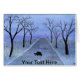 Eine winzige Winterlandschaft mit Aquarell und Tinte, in der eine Kastenschildkröte nachts unter den Sternen der Dämmerung die Straße überquert. Anstrichen für Art-O-Mat. Passen Sie den Text an, indem Sie ihn selbst in Anzug umwandeln!