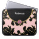 Schillernde Monogrammlaptophülse mit Damastmuster und simuliertes rosa Diamantedelstein Bling und Monogramraum, die Sie mit jedem möglichem Namen personifizieren können, Initialen oder Mitteilung. Dieser Entwurf schützt Ihre tragbare Elektronik wie Ihr netbook, Laptop oder Tablette in der schillernden Art und macht es Ihre Selbst.