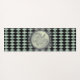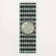 Ein silbernes Mosaikspiralmuster in Form einer Meeresschildkröte auf einer glänzenden grünen Kugel mit silber blühte in der Mitte auf einem passenden, schimmernden grünen, rautenförmigen Harlequin-Design auf einem schwarzen Hintergrund für Kontrast. Stilvolle Glittervibes.