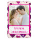 Mit dieser flexiblen Magnetkarte, die mit einem schimmernden lila Herzrahmen und einem romantischen Foto gestaltet wurde, verleihen Sie Ihrem Raum Persönlichkeit. Dieser Magnet mit der lustigen Beschriftung "Du bist derjenige, den ich sofort zurückschreibe" macht einen charmanten Sake für deinen Kühlschrank, Spind oder Büro. Merkmale: Flexibles und leichtes Magnetmaterial. Individualisierbares Foto Hochwertige, glänzende Oberfläche mit lebhaften lila Herzakzenten.