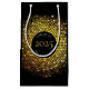 Die Silvestergeschenktasche zeichnet sich durch ein kreisförmiges Muster goldfarbiger Lichter gegen schwarzes Weiß aus, wodurch ein Rundrahmen für die Jahresanzeige entsteht. Das Bild wiederholt sich auf beiden Seiten des Beutels, sodass Sie die Nachricht auf beiden Seiten unabhängig von der anderen Seite ändern können. Es ist vielseitig genug als Gutes- oder Geschenktasche für eine Feier im Büro, Geburtstagsparty, Silvester Hochzeit oder ein Cocktail Party im Urlaub. Verfügbar mit passenden Produkten.