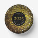 Die Papierschale des Silvesterabends weist ein kreisförmiges, goldfarbenes Party auf, das mit einem reichen Schwarz-Weiß-Kontrast versehen ist, wodurch ein Rundrahmen für die Jahresanzeige geschaffen wird. Es ist vielseitig genug für eine Feier im Büro, Geburtstagsparty, Silvesterhochzeit oder ein Cocktail-Party im Urlaub. Verfügbar mit passenden Produkten.