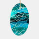 Ein ovales Ornament mit abstraktem Aquarelldesign, das auf Wellen von Judy Adamson hinweist.