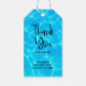 Geschenketiketten mit einem Foto von klarem, blauem Wasser des Beckens, mit schimmernden Reflexionen.