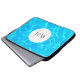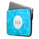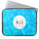Laptop-Ärmel mit einem Foto von klarem blauem Wasser aus dem Pool, mit schimmernden Reflexionen. Ein weißer Kreis lag oben mit Ihrem Namen und dem ersten drinnen.