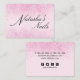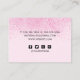 Schimmernder rosafarbener Staub schmückt den weichen rosa Hintergrund. Ihre Kontaktdaten wie Telefon, E-Mail, Website und Social Media Handle sind auf der Rückseite. Klicken Sie auf 'Pesonalize', um Ihre Daten hinzuzufügen. Sie können weiter anpassen, indem Sie auf den Link "Klicken, um weitere anzupassen" unten im Feld Personalisieren klicken und das Design-Tool verwenden, um Symbole für soziale Medien, die Sie nicht verwenden, zu entfernen und Icons, falls erforderlich, neu positionieren.