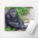 Schimpanse, die auf Felsen mit grüner Vegetation aufbaut