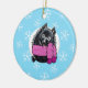 Niedliches Winterthema mit Schneeflocken und warmen Polka Dot Tuch ergänzen dieses originelle zeichn eines Schipperke. Niedliche Geschenkidee! Klicken Sie auf "Anpassen!" -Taste, um Text auf der Rückseite hinzuzufügen, z. B. den Namen eines Tieres, um ein wirklich einzigartiges Geschenk zu machen!