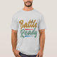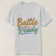 Dieses T - Shirt-Design erklärt "Battle Ready" in einer kraftvollen Darstellung von Multicolor. Jedes Wort verwendet eine andere kühne Farbe, die Stärke, Widerstandskraft und die Bereitschaft symbolisiert, sich jeder Herausforderung zu stellen.