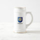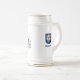 Bierkrug mit Zeichnung und Wappen des berühmten deutschen Schlachtschiffs Bismarck aus dem Zweiten Weltkrieg mit dem Namen des Schiffes in Frakturschrift.