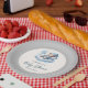 Feiern Sie die Ankunft Ihres Kleinen mit dieser zauberhaften Papiertafel mit einem Aquarellbaby, der friedlich auf einer Wolke schläft. Die niedliche Abbildung ist in einem runden Rahmen eingebettet, umgeben von einer ruhigen, hellgrauen Kulisse. Ideal, um Ihrem Baby-Duschbad-Party eine Touch Whimsy hinzuzufügen