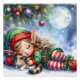 Schlafen Weihnachten Elf mit Calico Kitten Poster