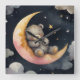 Schläfenbär auf dem Mond Quadratische Wanduhr