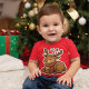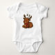 Kuscheliges Rentier-Design mit rotem Schal, sanfte Braunnuancen, cartoonig, ideal für Kinderbekleidung. Die ruhige Pose und warme Farben vermitteln Gemütlichkeit und Winterfreude.