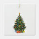 Auf der einen Seite dieses Weihnachtsschmucks wird ein Schlafengel gezeigt, auf der anderen Seite ein Weihnachtsbaum