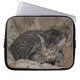 Diese Laptophülse kennzeichnet ein Foto eines entzückenden Schlafen Kitty. Sie schaut sehr gemütliches snuggled in ein Deckbett, das einen tan Hintergrund hat, ihre Tabbymarkierungen ergäzunzen.