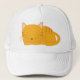 Entzückende Ausrüstungsbeschreibungen eine süße Illustration eines orange Tabbykätzchens, das ein Nickerchen auf niedlichen rosa oder blauen Herzen und Tatzendrucken nimmt, kopieren Hintergrund.