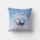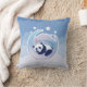 Niedliches Kissen mit einem Panda, der auf dem Mond, den weißen Sternen und dem blauen bewölkten Hintergrund schläft.