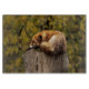 In einer ruhigen Waldlandschaft schlammt ein Fuchs friedlich auf einer rauen Baumrinde, sein raues Pelz harmoniert harmonisch mit den erdigen Tönen des Waldes. Das Bild erfasst das Wesen der Ruhe in der Wildnis, wie der Fuchs Erholungen ungestört in seinem natürlichen Lebensraum, ein Moment der Stille im Herzen der Natur.