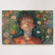 Dieses Puzzle mit Puzzleteil zeigt einen kleinen Jungen, der mitten in Blume schläft. Es wäre ein wunderschönes Geschenk für einen Puschenliebhaber.