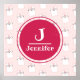 Ein Poster mit einem individuelle Name und Monogramm, das in einem rosa Kreis beginnt. Entworfen mit einem niedlichen Muster schlafender Kätzchen, die überall friedlich und glücklich aussehen. Rosa Hintergrund.