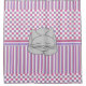 Ein Bild einer grauen schlafenden Katze mit einem Lächeln auf dem Gesicht gegen ein rosa, lila und graues Muster ist ein einzigartiges Design für Liebhaber von Katzen.