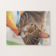 Schläfrige Katze auf farbigen Blättern Puzzle