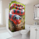 Dieser Duschvorhang hat eine Schlange darauf abgebildet.