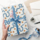Schlangen und Äpfel in blau und gelb. Wiederholen Sie das Muster.