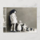 Das ist unsere Geschichte, und wir halten daran fest. Vintage Postkarte eines kleinen Mädchens und ihrer fünf Puppen, alle gegen die Wand, weil sie schlecht waren.