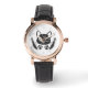Uhr, Klassische Damenuhr mit schwarzen Lederarmband