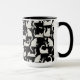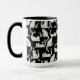 Dieses handgezeichnete Muster ist eine Zusammenstellung von furry Black Felines, die verschiedene Dinge überklopfen - Kaffeetassen, Sukkulente, Fernseh-Fernseh-Fernseh-Fernseh-Fernseh-Fernseh-Fernseh-Fernseh-Fernseh-Fernseh-Blume. Ein lustiges Muster für diejenigen, die ihre Katzen Liebe haben, auch wenn sie Blödsinn sind und Dinge umkippen. Diese Version ist eine weiße Katze mit kleinen rosa Ohren auf schwarzem Hintergrund.