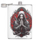 Meine Kunst stellt eine Figur dar, die Elemente der Mystik und der gotischen Kunst miteinander verbindet und einen zentralen Charakter mit einem ruhigen, aber intensiven Ausdruck aufweist. Die Frau verkleidete sich in einem gehackten Gewand. Ihre Haut ist blass, fast weiß, was ihr ein ätherisches Aussehen verleiht. Sie lässt ihre Hände in einer gebet-ähnlichen Geste zusammenklammern und betont dabei ein Gefühl von Kontemplation oder Ritual. Das Gesicht der Frau ist hochstilisiert, mit einem weißen Untergrund und roten Markierungen. Ein kleiner roter Punkt ist auf der Stirn vorhanden, und weitere rote Linien liegen unter ihren Augen, was die mystische Aura verstärkt.